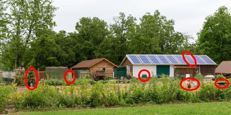 Solar panels can be obscured with dense shrubs or trees without reducing access to the sun.